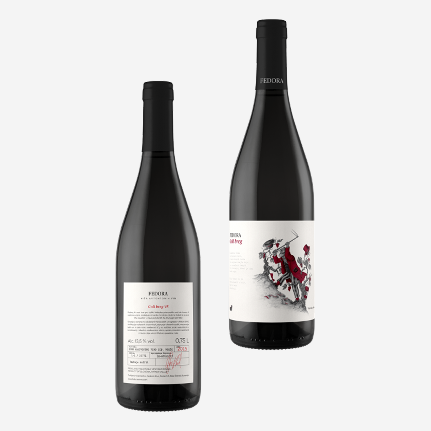 A long time ago, a man with one leg shorter than the other lived in the village. You could hear the sound of his dragging leg long before he came by your house. People felt uncomfortable meeting him and would hide every time they heard him approaching . But one autumn was ripe for a change. At the annual wine competition in which the whole valley participated, a mysterious wine was declared winner. To everyone’s astonishment it was the limping man’s sweet grape nectar. In the following days, the surprised villagers secretly followed him and were taken aback once again. They discovered the limping man had a secret vineyard on a rugged steep hill which could only be tamed by him thanks to his shorter leg. From that day on, respect for the mysterious winemaker grew and people greeted him, tipping their hats. In his honor we named one of our wines Goli breg.Fedora.