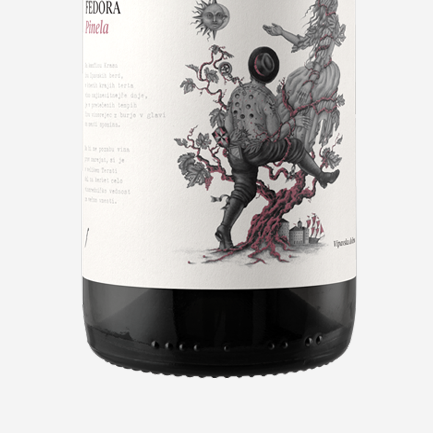 Pinela Fedora is cheerful, light, and fruity. It is the wine we drink to relax and delight ourselves. The label tells the story of the lunar calendar, which we take into account with everything we do in the vineyards and in the cellar.